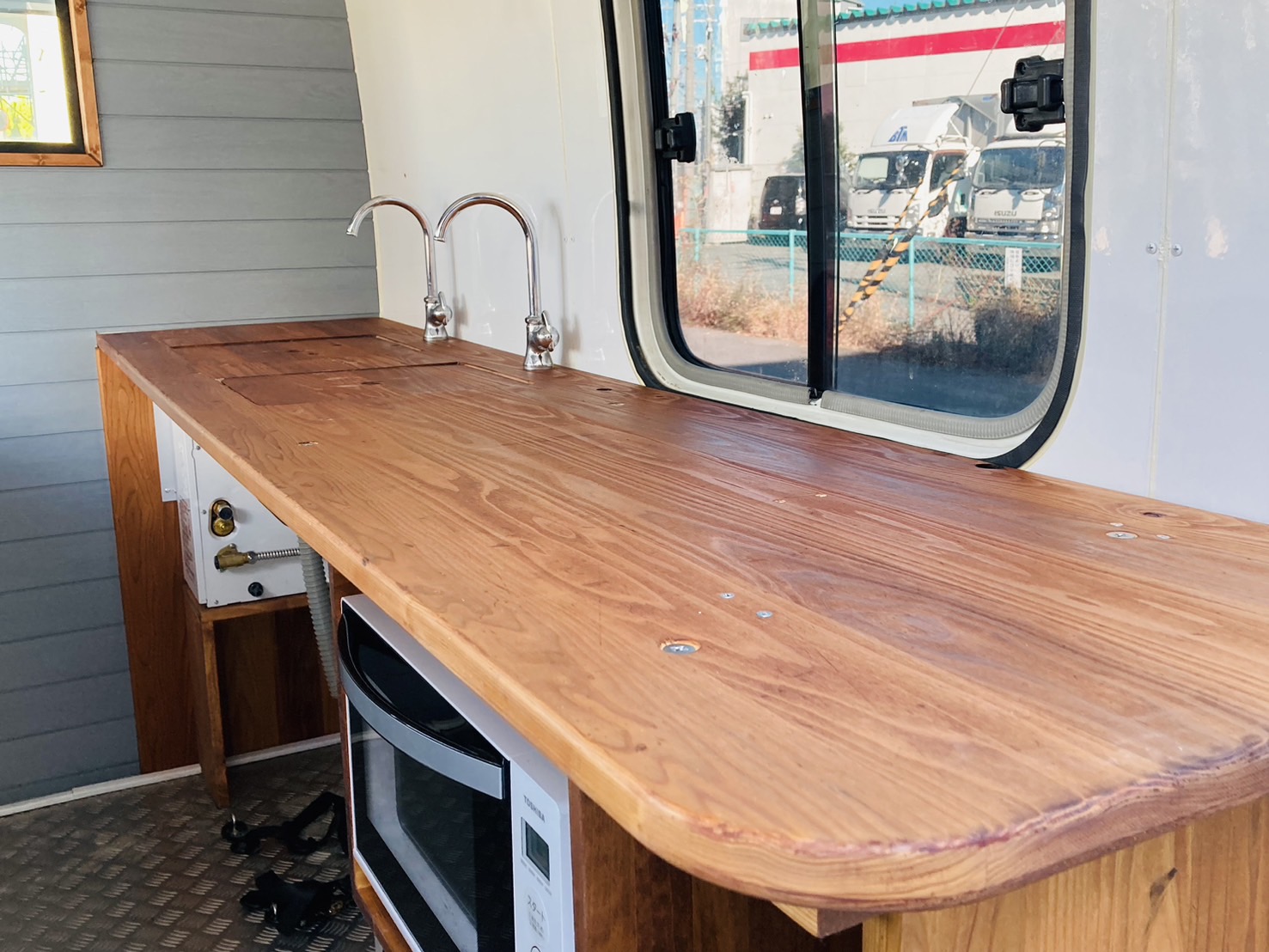 キッチンカーのことならアイシンオートにお任せ下さい!!【独自開発のキッチンカー】【頼れる!車、キッチンカー、軽キッチンカーのプロ集団】【充実したキッチンカー開業支援】シンクや冷蔵庫付いてます。キッチンカーとして即使用出来ます。